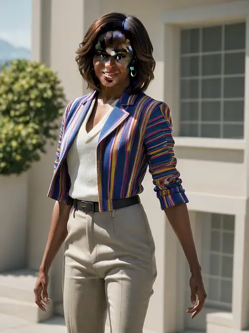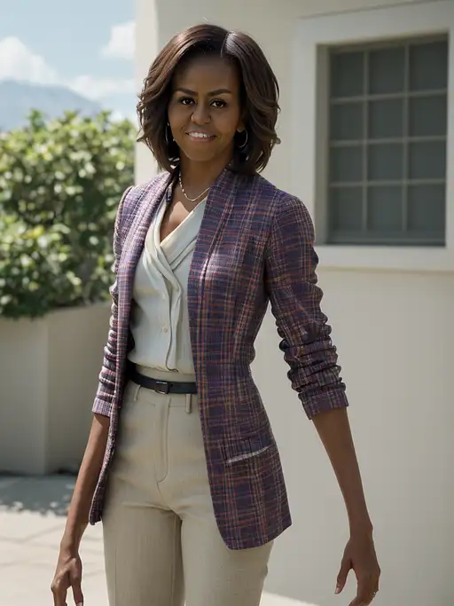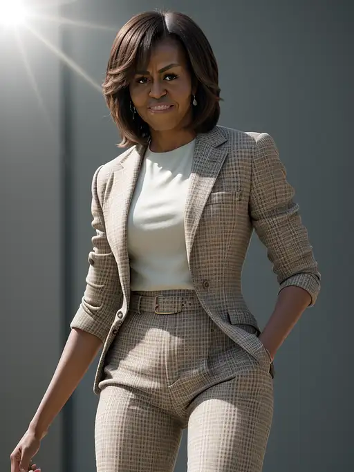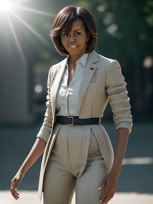 2 years ago portrait of Michelle Obama dressing masculine clothes, ultra realistic, 8k full HD, low angle, unreal engine 5, cinematic, masterpiece, insane detail, real photography, bright colors, sun-soaked colours, Fujifilm X-T4, Sony FE 85mm --ar 900:1600 --s 750 --style raw --v 5.2 --no naked cr4shband1coot 0 170