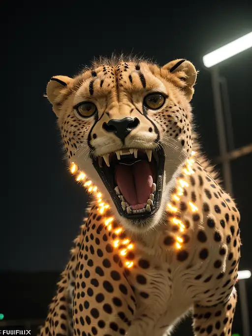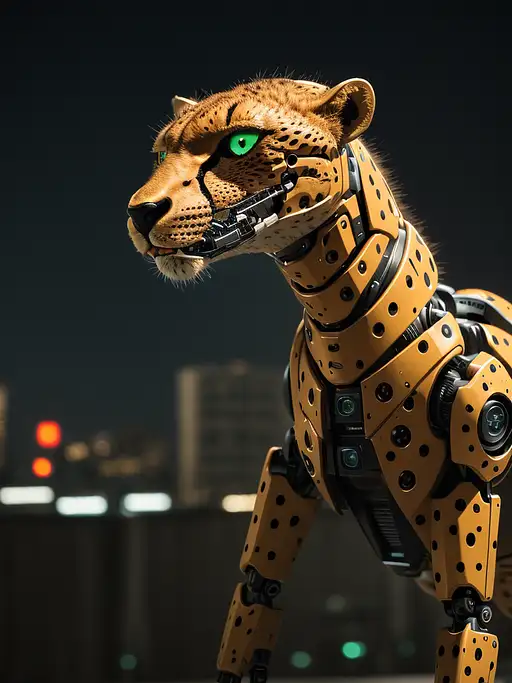 2 years ago a robotic cheetah, bright lights, night time, cinematic lighting, battered, medium angle, 8k, hyper realistic, focused, extreme details, unreal engine 5, cinematic, masterpiece, insane detail, real photography, bright colors, sun-soaked colours, Fujifilm X-T4, Sony FE 85mm --ar 900:1600 --s 750 --style raw --v 5.2 cr4shband1coot 0 29