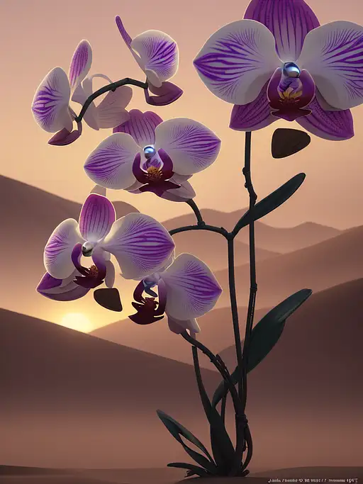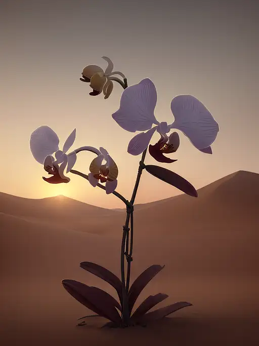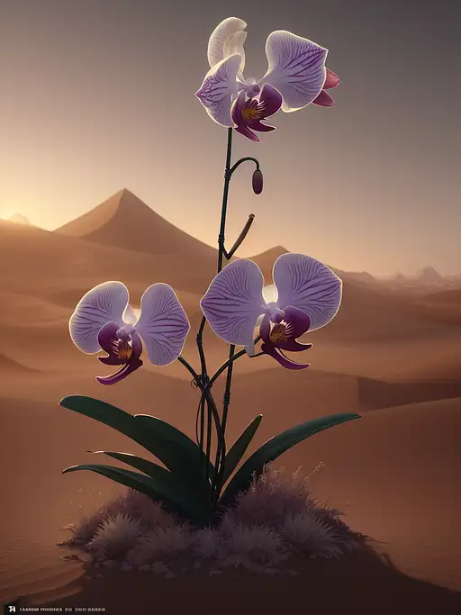 2 years ago Photo of a ultra realistic orchid in desert, dramatic light, pale sunrise, cinematic lighting, battered, low angle, trending on artstation, 4k, hyper realistic, focused, extreme details, unreal engine 5, cinematic, masterpiece, art by studio ghibli, intricate artwork by john william turner cr4shband1coot 0 18