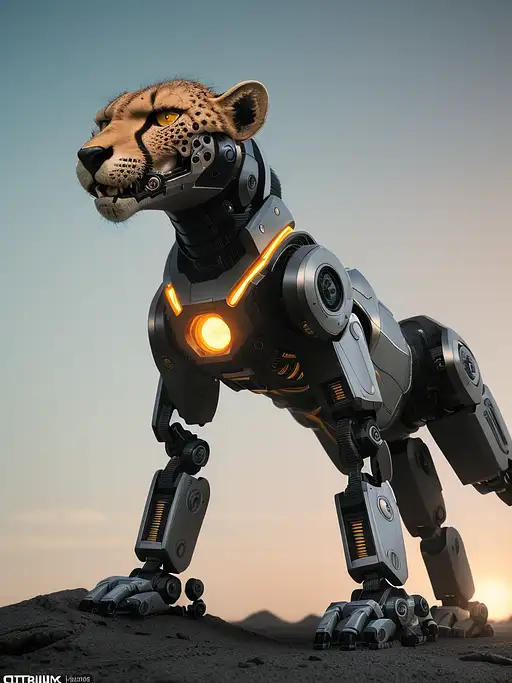 2 years ago Photo of a robotic cheetah, dramatic light, pale sunrise, cinematic lighting, battered, low angle, trending on artstation, 4k, hyper realistic, focused, extreme details, unreal engine 5, cinematic, masterpiece, artwork by khalil studios cr4shband1coot 0 18