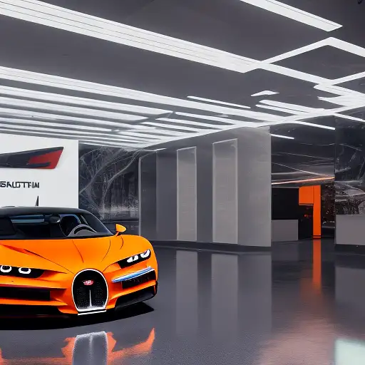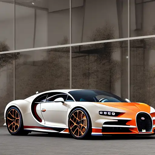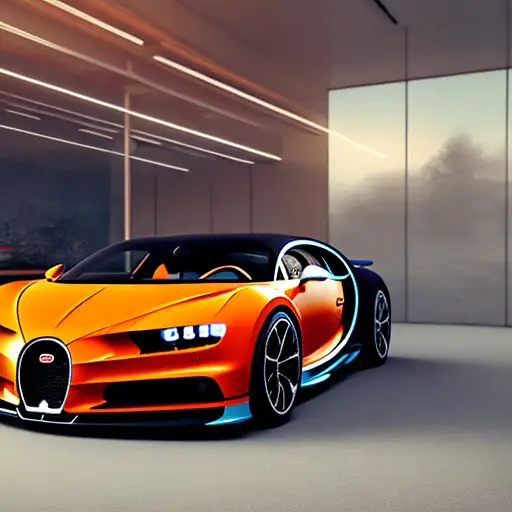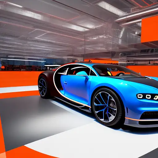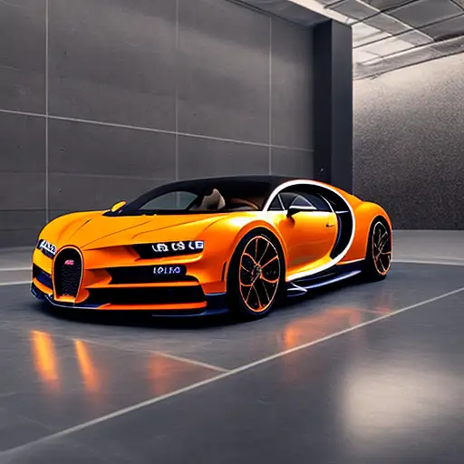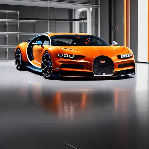 over 2 years ago photo of a Bugatti Chiron pur sport, orange in colour, black wheels, showroom setting, showroom lights, pbr materials, reflections, super realism, 8k, unreal engine 5, super optimization, ultra settings d097dcc06ac 0 14