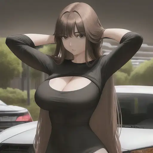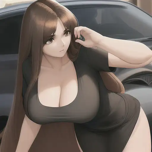 over 2 years ago a woman, long brown hair, beautiful face, black t shirt, large bust, bending down slightly, super realism, 8k, alot of cleavage, inside of a car d097dcc06ac 0 39