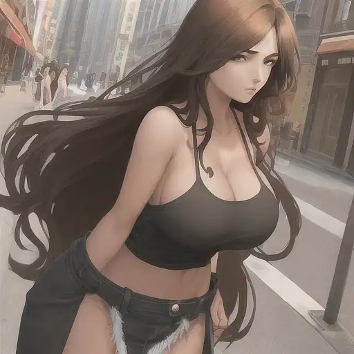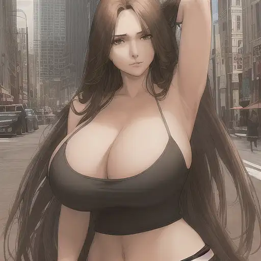 over 2 years ago a woman, long brown hair, beautiful face, black spaghetti strap tank top, city setting, super realism, 8k, huge bust, cleavage, slight bend d097dcc06ac 0 14