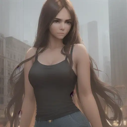 over 2 years ago safe, a woman, long brown hair, beautiful face, black spaghetti strap tank top, city setting, super realism, 8k d097dcc06ac 0 23