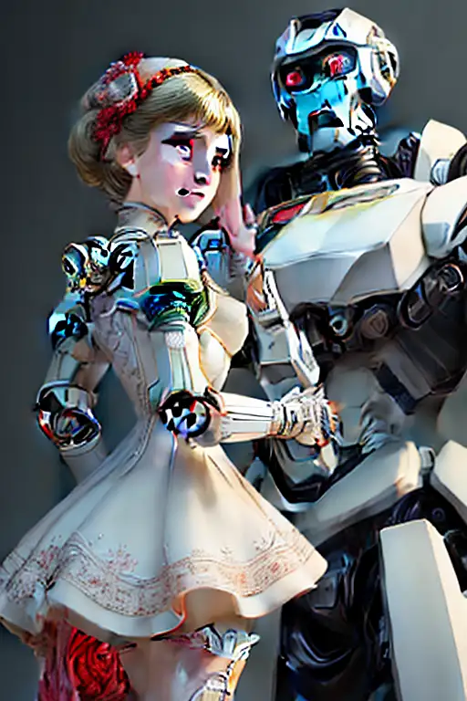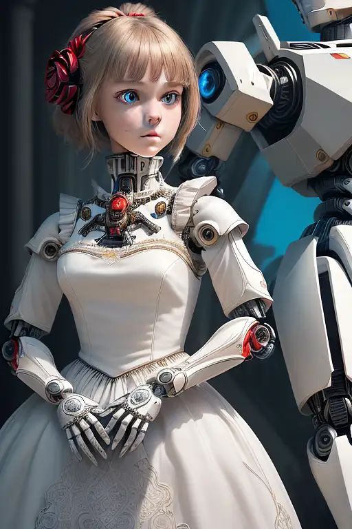 2 years ago (masterpiece:1.4, best quality), (intricate details), unity 8k wallpaper, ultra detailed, intricate details, super complex details, ((2people)), (girl_standing_beside_robot:1.2), girl, (perfect detailed face, detailed eyes, white dress), BREAK robot, (giant mecha, red and black armor, blue eyes, holding rifle), starry sky, skyline, <lora:Mecha:1>, <lora:Add More Details:0.8> d146a931451 1 130