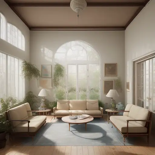 2 years ago High resolution photography interior design, dreamy sunken living room conversation pit, wooden floor, small windows opening onto the garden, bauhaus furniture and decoration, high ceiling, beige blue salmon pastel palette, interior design magazine, cozy atmosphere; 8k, intricate detail, photorealistic, realistic light, wide angle, kinkfolk photography, A+D architecture d146a931451 0 25