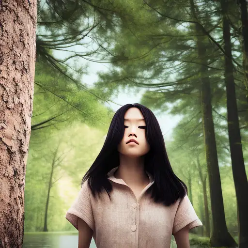 2 years ago daylight, indirect lighting, 1girl, Asian girl watching advertising broad, black long hair, river and forest background d146a931451 0 25