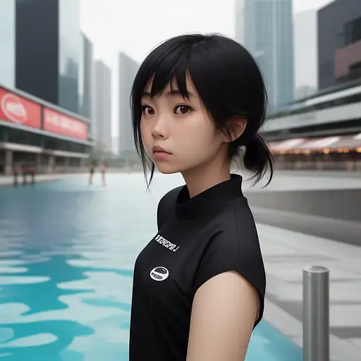 2 years ago 1girl, Asian girl watching advertising broad, wear swimming appearal, black hair, city background d146a931451 0 27