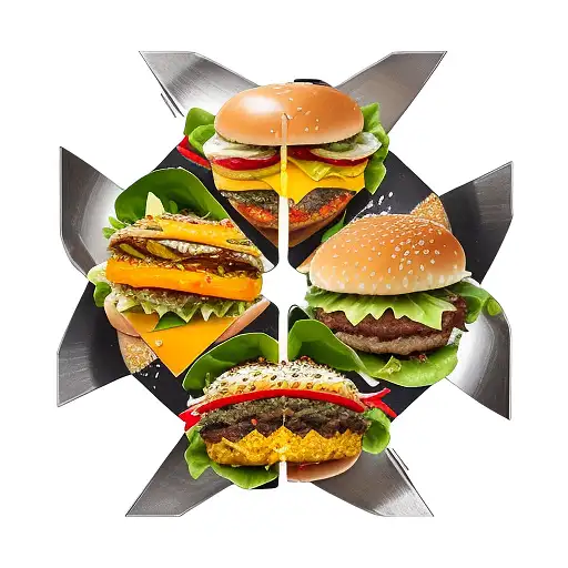 2 years ago Flying food photography with [Two Burgers] as the main subject, Splashes of Toppings and Seasonings, [Rocket Lettuce], [Cheddar Flavored Cheese], [Onion], [Pickles], [Special Sauce], [Sesame Bun], [ sea salt crystals] ::3 Capturing the dynamic splashes of food using high-speed photography , photorealistic, surrealism style, [white background], trending background [clean], Minimalist ::2 [Cuware], [Table], [ Steam], [Smoke], [Vegetable Leaves], [Tomato] ::-0.5 Ad Posters, Pro-Grade Color Grading, Studio Lighting, Rim Lights, [Layered Comps], EOS-1D X Mark III, 500px, Behance, concept art d146a931451 0 65