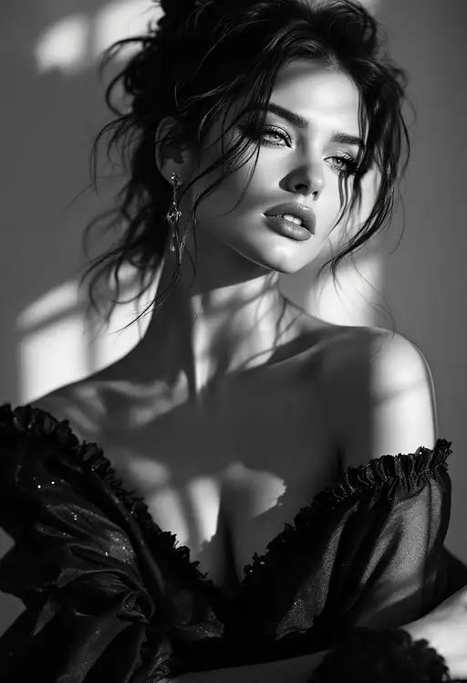 10 months ago hyper-realistic photograph, woman, beautyfull, black and white,natural light,dior style d4c88c81533 0 39