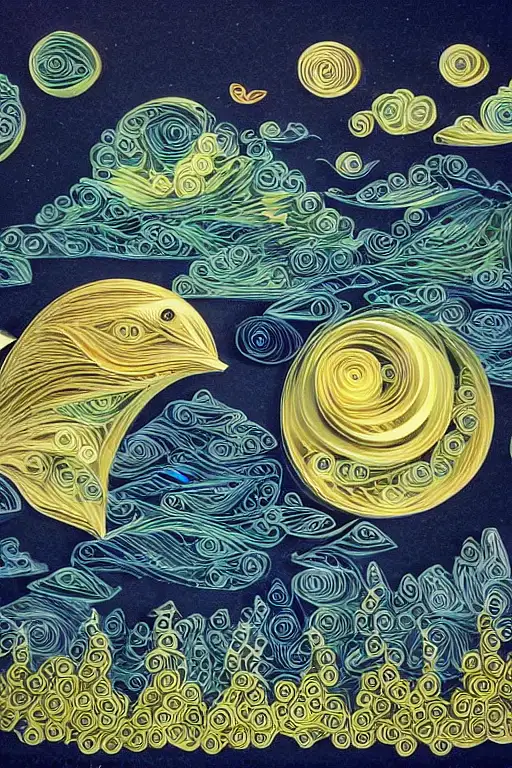 over 2 years ago Paper quilling, paper cut art, paper illustration, night mountains, birds flying, four color, very detailed, 8k --v 4 d66447b8880 1 94