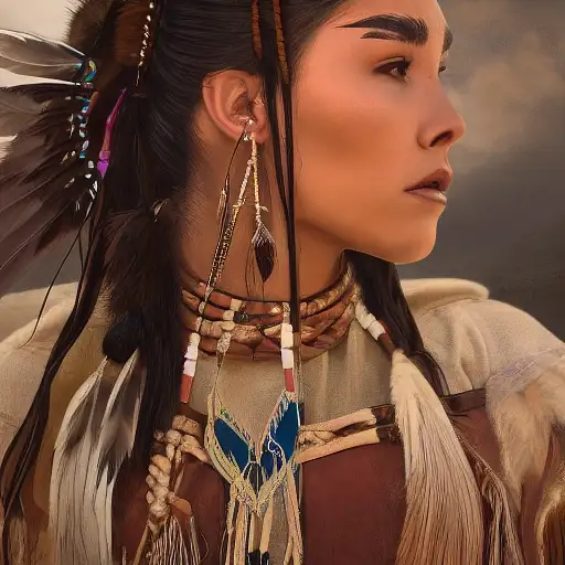 over 2 years ago mdjrny-v4 style portrait photograph of Madison Beer as Pocahontas, young beautiful native american woman, perfect symmetrical face, feather jewelry, traditional handmade dress, armed female hunter warrior, (((wild west))) environment, Utah landscape, ultra realistic, concept art, elegant, ((intricate)), ((highly detailed)), depth of field, ((professionally color graded)), 8k, art by artgerm and greg rutkowski and alphonse mucha danhero 1 100