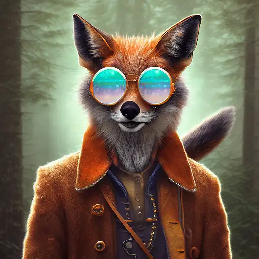 over 2 years ago mdjrny-v4 style highly detailed matte painting stylized three quarters portrait of an anthropomorphic rugged happy fox with sunglasses! head animal person, background blur bokeh! ! danhero 0 80