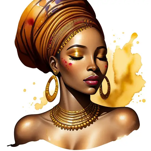 2 years ago watercolor painting, Portrait of an african woman with closed eyes and beautiful golden makeup, ink splashes background darkenway 1 68