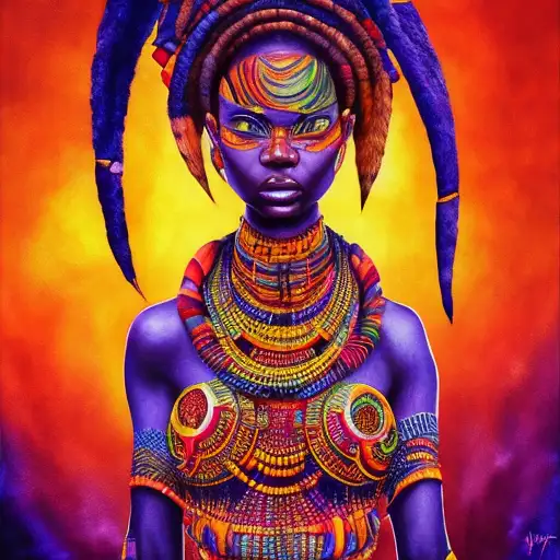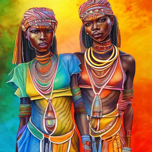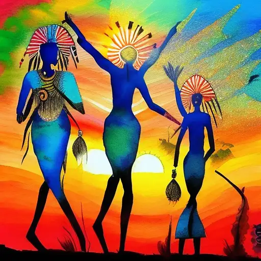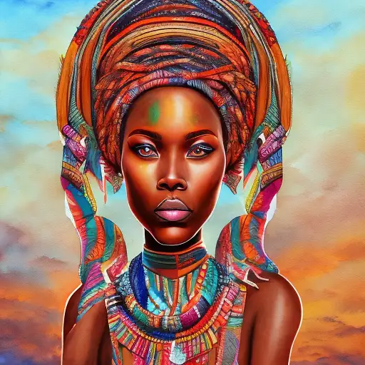 over 2 years ago watercolor Tribal art African women Painting, Sunset Scenery Acrylic Painting, Tribal painting , 3d rendering , watercolor drawing in full artboard, ultra high details, intricate, realistic drawing, professionally color graded, glitter,ink splashes background, trending on artstation darkenway 0 180