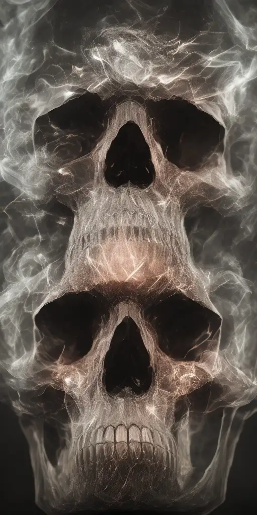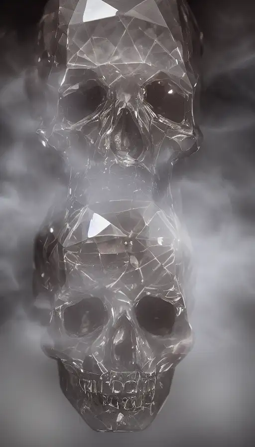 over 2 years ago translucent diamond skull with dramatic atmosphere and light piercing it with smoke coming out of the eyes, hyper realistic, photography, cinematic scene from a movie, volumetric lights, lots of details, 4K, photorealistic —q 2 —ar 9:16 dsalvat1 0 80