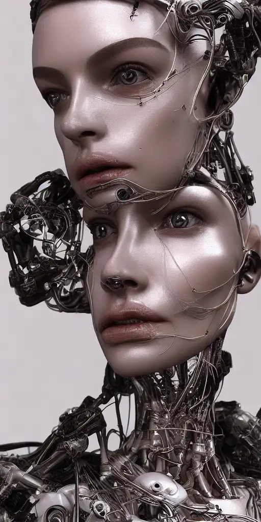 over 2 years ago complex 3d render ultra detailed of a beautiful porcelain profile woman android face, cyborg, robotic parts, 150 mm, beautiful studio soft light, rim light, vibrant details, luxurious cyberpunk, lace, hyperrealistic, anatomical, facial muscles, cable electric wires, microchip, elegant, beautiful background, octane render, H.R. Giger style, 8k dsalvat1 0 81