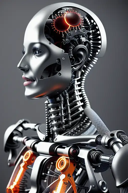 over 2 years ago 1mechanical girl,((ultra realistic details)), portrait, global illumination, shadows, octane render, 8k, ultra sharp,metal,intricate, ornaments detailed, cold colors, egypician detail, highly intricate details, realistic light, trending on cgsociety, glowing eyes, facing camera, neon details, machanical limbs,blood vessels connected to tubes,mechanical vertebra attaching to back,mechanical cervial attaching to neck,sitting,wires and cables connecting to head dsalvat1 2 150
