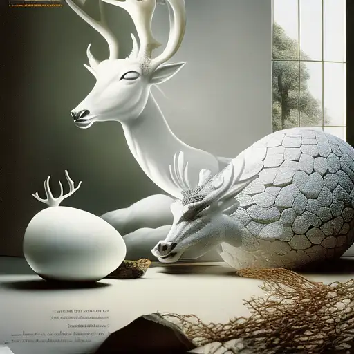 almost 2 years ago a majestic white deer explores a dragon egg guarded by a dragon, daylight, indirect lighting, AD magazine, Frank Lloyd, Eames, Mies van der Rohe e384910035b 0 55