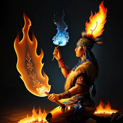 almost 2 years ago a retro future shaman with purple coat building up colorful flaming energy on his hands, A garden of oversized flowers, with a campfire made of rainbow-colored rays, Discover a charming and magical world in this landscape,Imagine a place where flowers shine in all the colors of the rainbow. watercolors. 8k e384910035b 0 78