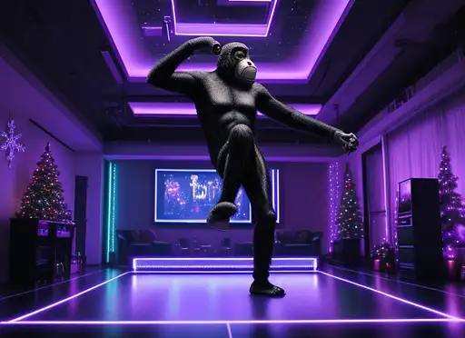 11 months ago Image cyber punk futurism Christmas living room with dance floor with an ape standing on the dance floor ec3412fd4ff 0 25