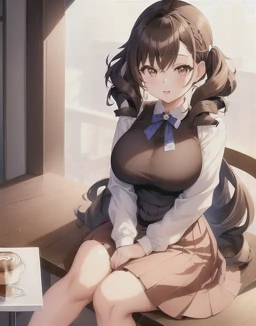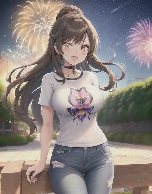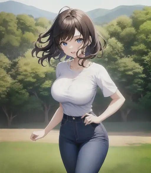 1girl, perfect anime illustration, happy, very closeup painting, twin tails, long hair, humongous breasts, dark brown hair, best girl hair, hazel eyes, woman, casual outfit, jean shirt, outdoors, rural, plant field, corn, tall plants, high grass, farmer, standing, long sleeves, tractor, outdoors, jeans, happy, realistic, aesthetic. best quality, animated lighting, masterpiece, fashion, anime, trending, detailed fanart, anime faces, dynamic pose, hand against jeans, cute anime