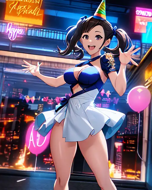 girl, happy, high ponytail, brown chocolate hair, f1 driver, le mans, race track, realistic, racing blue fire suit, tight, formula one, enormous big impeccable showing breast, blue f1 car with sponsors and design, f1 car in painting, sunny, track with walls and fences, concrete, windows, parking lot, cute. anime, professionally color graded, HDR, anime faces, hyper resolution, created by Artgerm, Greg Rutowski volumetric lighting, intricately detailed outfit, octane engine, dramatic lighting, race f1 car, thicc girl