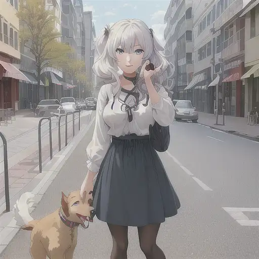 over 2 years ago 1girl, painting of a girl petting a dog outside, sidewalk, happy, casual outfit for public, sidewalk and road, cars, buildings, outdoors, dog on leash, normal hair and eye color, anime, anime face, art by artgerm and greg rutkowski and alphonse mucha, 8k, artgerm anime, professionally color graded, depth of field, breast eclipze 0 87