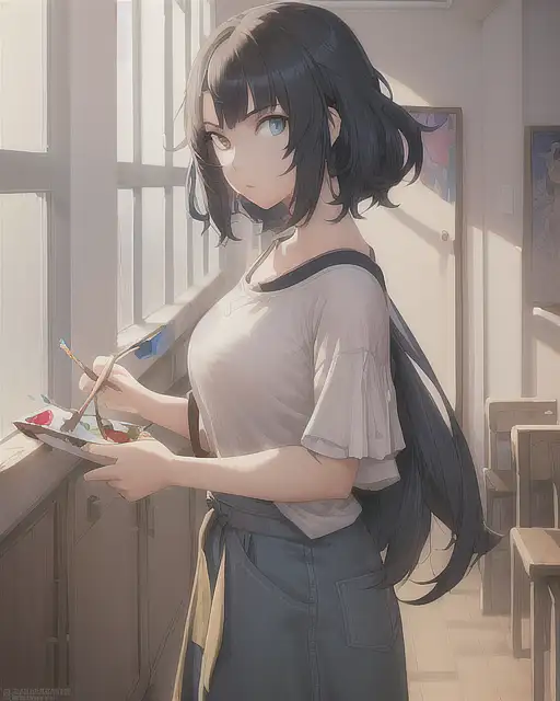 over 2 years ago 1girl, painting of a girl doing something, casual outfit, indoors natural hair and eye color, anime, anime face, art by artgerm and greg rutkowski and alphonse mucha, 8k, artgerm anime, professionally color graded, depth of field eclipze 0 62