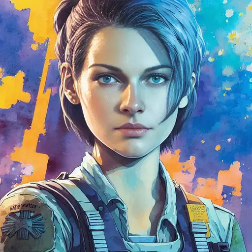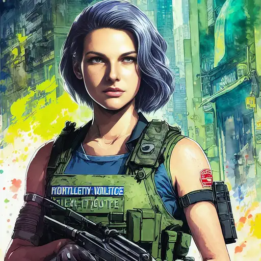 over 2 years ago 1girl [zotova], like jill valentine from resident evil 3, in police uniform, beautiful intricate colored hair, Anime portrait of young woman, hard shadows and strong rim light, watercolour, traditional material, art by juan giminez and atey ghailan and sachin teng, {{ flat color }} medium shot eekop737 5 540