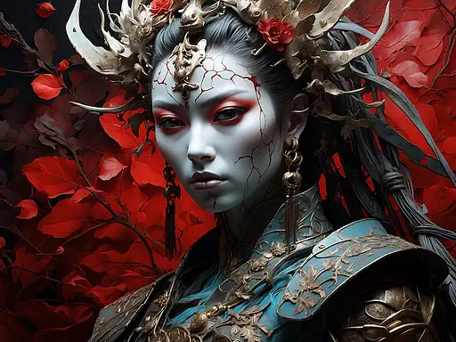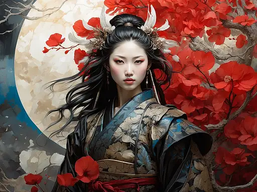almost 2 years ago a painting of a woman with flowers in her hair, a detailed painting by Li Song, featured on cgsociety, fantasy art, detailed painting, anime aesthetic, rich color palette elielborges 4 170