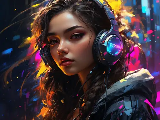almost 2 years ago a woman with headphones on her face, cyberpunk art by Sam Spratt, cgsociety, computer art, detailed painting, behance hd, deviantart hd elielborges 0 96