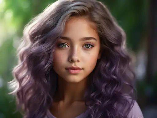almost 2 years ago a digital painting of a young girl with purple hair, a photorealistic painting by Lü Ji, trending on cg society, photorealism, photorealistic, iridescent, ilya kuvshinov elielborges 0 77