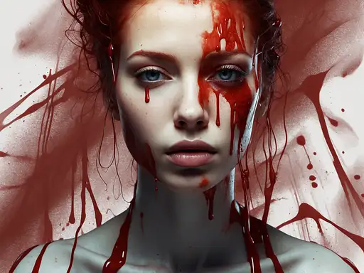 almost 2 years ago a painting of a woman with blood dripping all over her face, a photorealistic painting by Christian W. Staudinger, featured on zbrush central, gothic art, behance hd, dye-transfer, zbrush elielborges 0 66