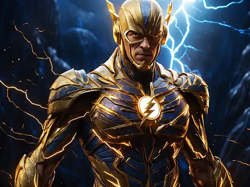 almost 2 years ago An electrifying artwork featuring The Flash transformed into a lightning-fast Pharaoh God, a true masterpiece that captures his incredible speed and agility. The Flash adorned in sleek golden armor, intricately designed with lightning motifs, symbolizing his connection to the speed force. His eyes gleaming with vibrant energy, radiating a sense of urgency and determination. Wearing a stylized headdress resembling a lightning bolt, representing his lightning-fast movements. Holding a lightning-infused staff, crackling with kinetic energy. Surrounding him, a backdrop of swirling cosmic energy, streaks of lightning, and a time-distorted landscape, showcasing the speedster's incredible powers. The artwork, meticulously crafted with dynamic lines and vibrant colors, captures the essence of The Flash as a Pharaoh God, a force of speed and heroism beyond mortal comprehension. elielborges 6 240