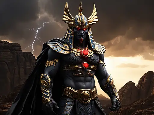 almost 2 years ago A mesmerizing artwork depicting Darkseid transformed into a fearsome Pharaoh God, a true masterpiece that exudes dominance and menace. Darkseid adorned in a formidable golden armor, etched with ancient hieroglyphs that speak of his unrivaled power. His eyes glowing with a fiery crimson hue, emanating an aura of pure malevolence. Wearing a menacing headdress adorned with jagged edges and ominous symbols, symbolizing his reign over destruction. Holding a scepter forged from dark, obsidian-like material, crackling with destructive energy. Surrounding him, a vast and desolate landscape, with crumbling ruins and thunderous storm clouds, reflecting his domain of everlasting darkness. The artwork, meticulously crafted with intricate details, captures the essence of Darkseid as a Pharaoh God, a relentless force of darkness and tyranny. elielborges 0 87