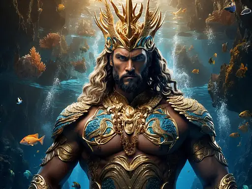 almost 2 years ago A captivating artwork featuring Aquaman transformed into a majestic Pharaoh God, a true masterpiece that embodies his connection to the ocean and ancient power. Aquaman adorned in magnificent golden armor, intricately engraved with swirling patterns reminiscent of ocean waves, symbolizing his dominion over the seas. His eyes shimmering with a tranquil blue glow, reflecting his affinity for aquatic life. Wearing a regal headdress adorned with seashells and coral, representing his role as the protector of the deep. In his hand, he holds a trident, crackling with elemental energy, a symbol of his authority. Surrounding him, a backdrop of a vast underwater kingdom, with vibrant marine life, coral reefs, and sunken treasures, showcasing his domain. The artwork, crafted with meticulous attention to detail, captures the essence of Aquaman as a Pharaoh God, a majestic figure embodying the power and beauty of the ocean. elielborges 0 150