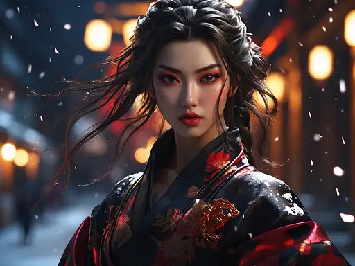 almost 2 years ago a painting of a woman in a kimono, cyberpunk art by WLOP, cgsociety, fantasy art, artstation hd, detailed painting, anime aesthetic elielborges 0 26