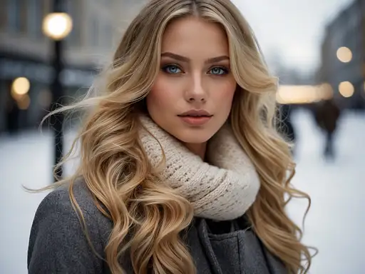 almost 2 years ago a woman with long blonde hair standing on a street, a photorealistic painting by Alexander Kucharsky, featured on cg society, rococo, pretty, beautiful, enchanting elielborges 1 64