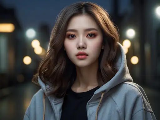 almost 2 years ago a woman wearing a brown hoodie looking at the camera, a character portrait by Yi Jaegwan, featured on cg society, aestheticism, ominous vibe, dark, studio portrait elielborges 4 110