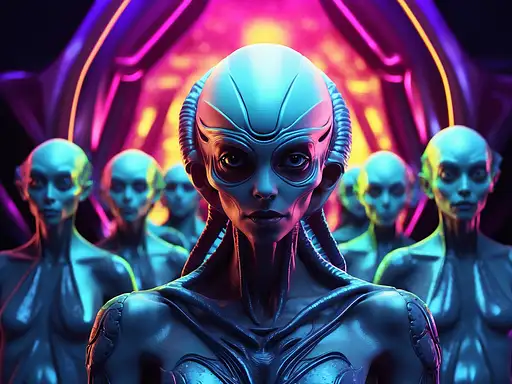 almost 2 years ago Group of people in the style of alien mysticism, neon palette, illustrated render, highly detail, high contrast elielborges 0 46