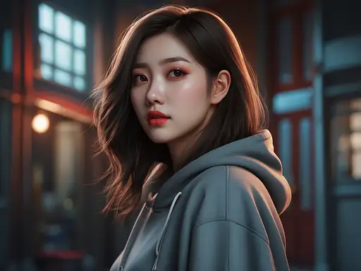 almost 2 years ago a woman in a gray hoodie standing in a dark room, a photorealistic painting by Lü Ji, cg society contest winner, photorealism, artstation hd, photorealistic, detailed painting elielborges 0 66
