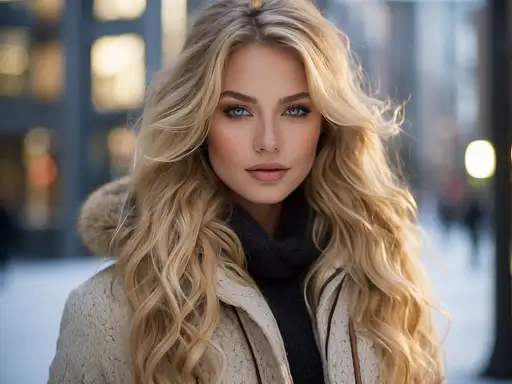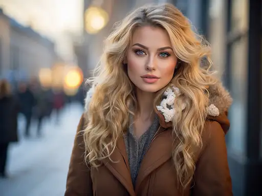 almost 2 years ago a woman with long blonde hair standing on a street, a photorealistic painting by Alexander Kucharsky, featured on cg society, rococo, pretty, beautiful, enchanting elielborges 0 56