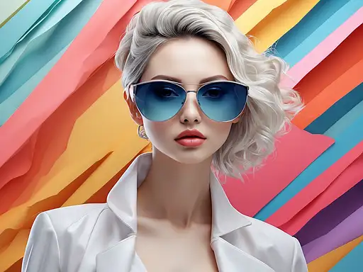 almost 2 years ago a woman with white hair and blue sunglasses, a photorealistic painting by Jan Tengnagel, featured on cg society, pop art, behance hd, daz3d, rich color palette elielborges 3 94