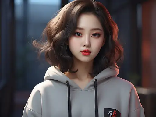 almost 2 years ago a woman in a gray hoodie standing in a hallway, a photorealistic painting by Lü Ji, trending on cg society, sots art, studio portrait, black background, pretty elielborges 0 51