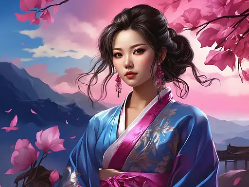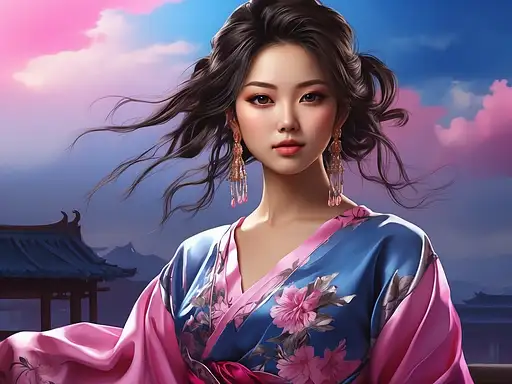 almost 2 years ago a painting of a woman in a kimono, a detailed painting by Lü Ji, featured on cgsociety, fantasy art, detailed painting, artstation hd, anime aesthetic elielborges 2 61