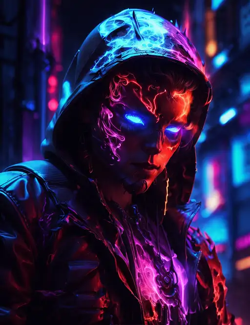 almost 2 years ago a man in a futuristic suit with neon lights on his face, cyberpunk art by Liam Wong, cgsociety, computer art, darksynth, synthwave, glowing neon elielborges 1 170