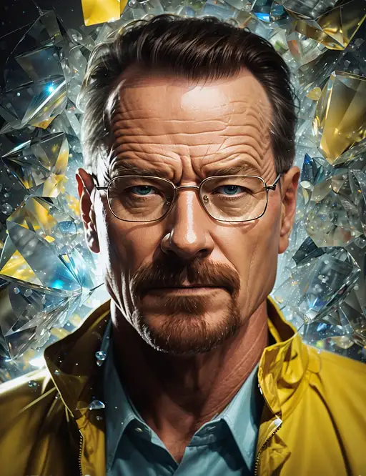 almost 2 years ago a man with glasses and a yellow jacket, an ultrafine detailed painting by Sam Spratt, cgsociety, crystal cubism, reimagined by industrial light and magic, made of glass, poster art elielborges 0 23
