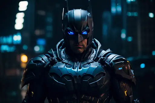 almost 2 years ago a man in a batman costume with blue eyes, a comic book panel by Zack Snyder, cgsociety, rayonism, reimagined by industrial light and magic, #vfxfriday, dc comics elielborges 3 120