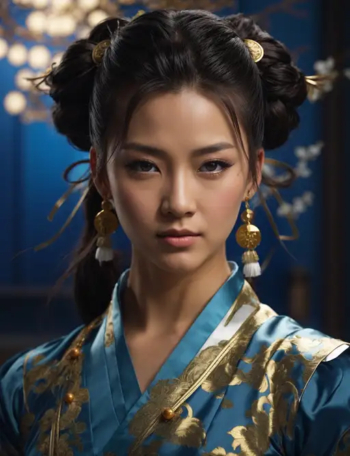 almost 2 years ago a woman in a blue and gold dress, a character portrait by Kim Tschang Yeul, featured on cg society, dau-al-set, movie still, studio portrait, uhd image elielborges 3 110